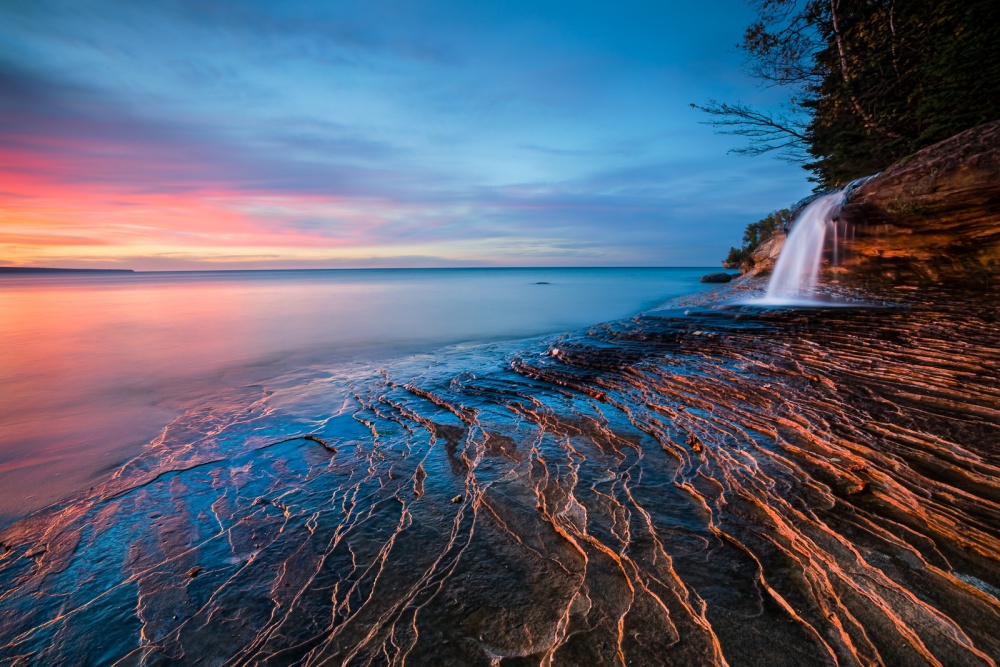 One of my favorite photos is “Frozen Passage”. It was taken in a sleepy little town called Frankfort on Lake Michigan shore in the winter.  When I arrived in a heavy snow storm, the entire resort had less than five guests. I am sure I was the only photographer in town. I scouted the area and waited for the gloomy sky to clear. Near the dusk of second day, I saw a glimpse of hope. There was a slim gap in the thick cloud at horizon towards west. I put on the ice cleats and headed out to the icy pier.
