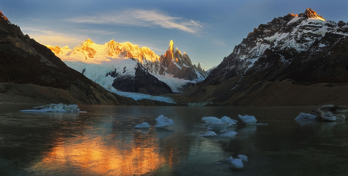 After arriving in El Chalten, I stayed one night in Patagonia Travellers’ Hostel. Early the next morning, I hiked 11 km to go to De Agostini camp-site, where I spent the next two days exploring and photographing Laguna Torre, Cerro Torre and the surrounding area.
