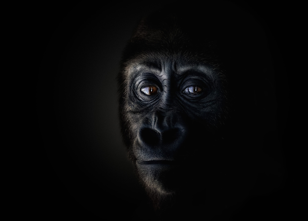 So I chose to make the portraits from a feasible (and safe) position and recreate the studio in the edition phase.  I started experimenting, and I realized that in the end the result was better, because the animal behaved naturally when not forced to be in a studio. Studio work often frightens or stresses the animal, and the result is a portrait of a harassed creature.  So what was initially a constraint ended up becoming an advantage. The animal is often unaware that he's being photographed, or if it is, eye contact is made, but each one from his  own safe space. And I often try to get that eye contact, because that is where your consciousness is best perceived and a fascinating interaction develops. I then came to the conclusion that it is not worth forcing the animal to pose in a photographic studio just to get a dark background. If this can be done in post-production, there is no need to disturb it.